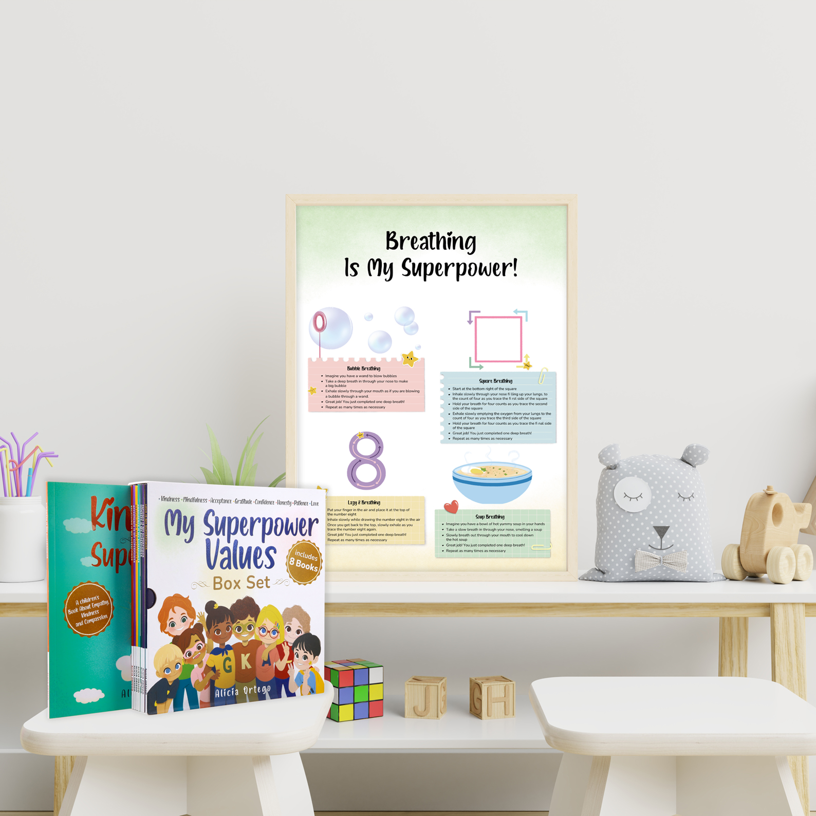 The Superpower Printable Bundle includes 6 fun and meaningful tools that help children explore feelings, kindness, and mindfulness through games, affirmations, and creative activities.